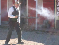 We had breakfast at one of the "saloons," and were just starting back toward the car when we were accosted by a group of cowboys promising a "gunfight show that will kill you with laughter." How could we resist?